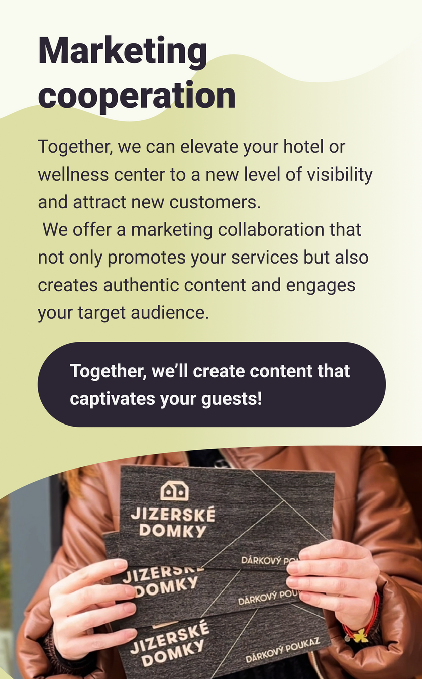 Our goal is to bring premium products from our catalog to your accommodation facility that will enhance your unique character and provide guests with an unforgettable experience. We focus on collaborating with boutique hotels, glampings, and premium wellness centers, where we emphasize personalization and an individual approach.