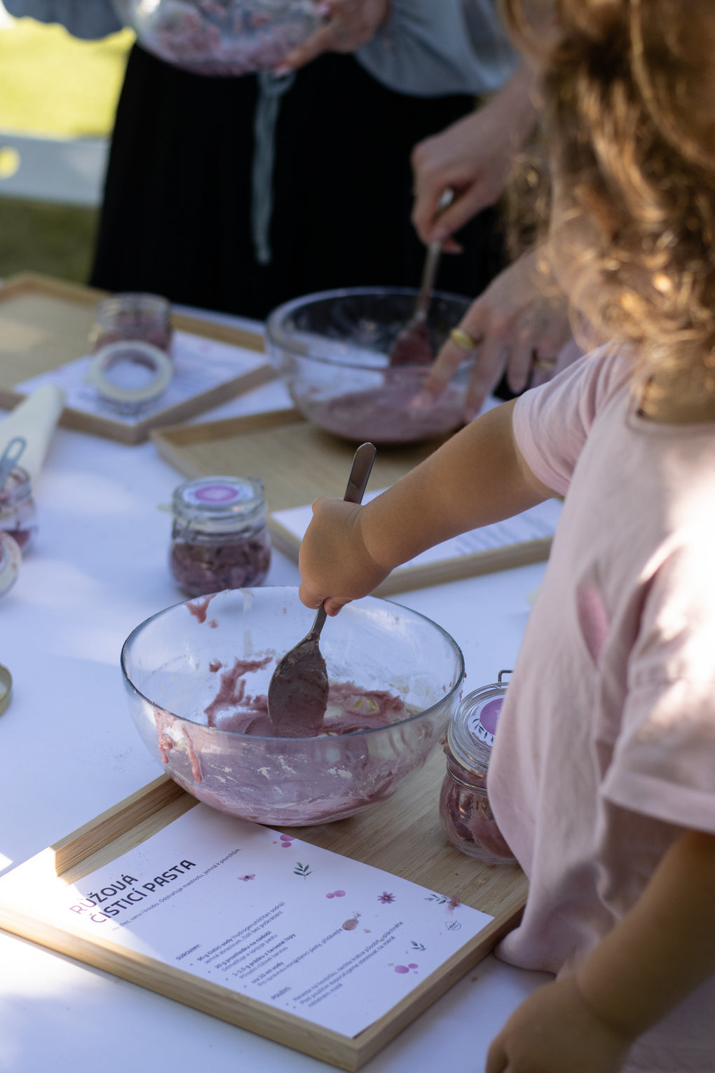 TIP: Pokud chceš, můžeš přidat prášek z červené řepy, který dodá směsi krásnou růžovou barvu, ale nemá žádnou funkční roli, takže jej můžeš úplně vynechat. Voda pomáhá vytvořit správnou konzistenci. Můžeš přidat pro barvu i jiné přírodní barvivo jako je třeba spirulina.