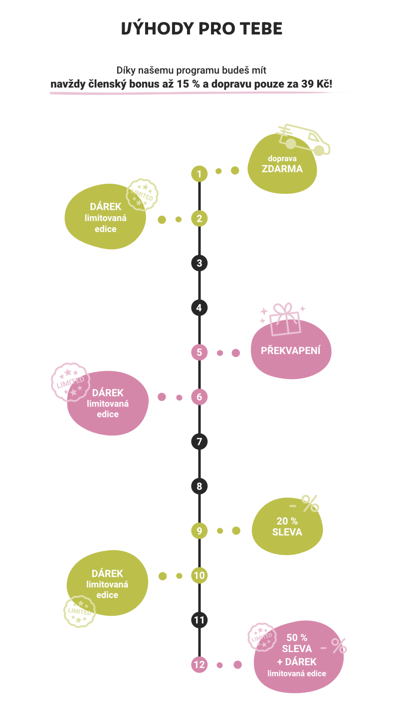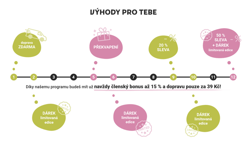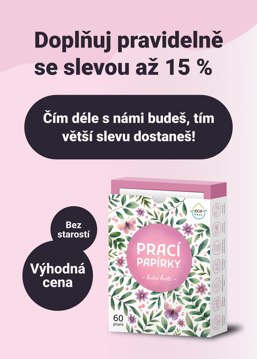 Poradím ti, jak ušetřit na produktech EcoHaus! Vstup do našeho bonusového programu a získáš neomezenou slevu až 15 % na každou objednávku! K první objednávce dostaneš dopravu zdarma a každou další jen za 39 Kč! V bonusovém programu na tebe čeká spousta dalších slev a dárků, například produkty z limitované edice. A to nejlepší? Za každých 12 objednávek získáš 50% slevu! Pravidelné doplňování produktů EcoHaus se zkrátka vyplatí!Pokud máš další dotazy, podívej se na tuto stránku nebo nás neváhej kontaktovat!