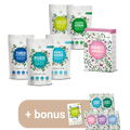 Chceš prát bez aviváží, gelů a zbytečných produktů? Balíček Eko praní bez kompromisů ti dodá vše, co potřebuješ k dokonale čistému a voňavému prádlu – a to bez toxických látek. Kromě toho v něm najdeš i 2 šikovné bonusy – testovací balení papírků a tester kyseliny citronové.