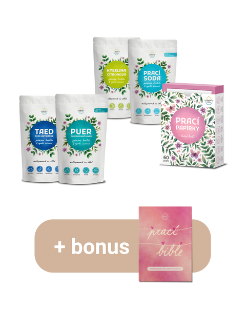 Šedé prádlo, zašlé ponožky, skvrny od trávy nebo jídla? Tohle je tvůj bělící arzenál bez chemie. Osvědčená kombinace pro zářivě bílé prádlo, která opravdu funguje. A jako bonus Prací bible, která ti odtajní další tipy a triky pro péči o právvdlo, textil i náročné materiály. Efektivně, ekologicky a bez starostí!