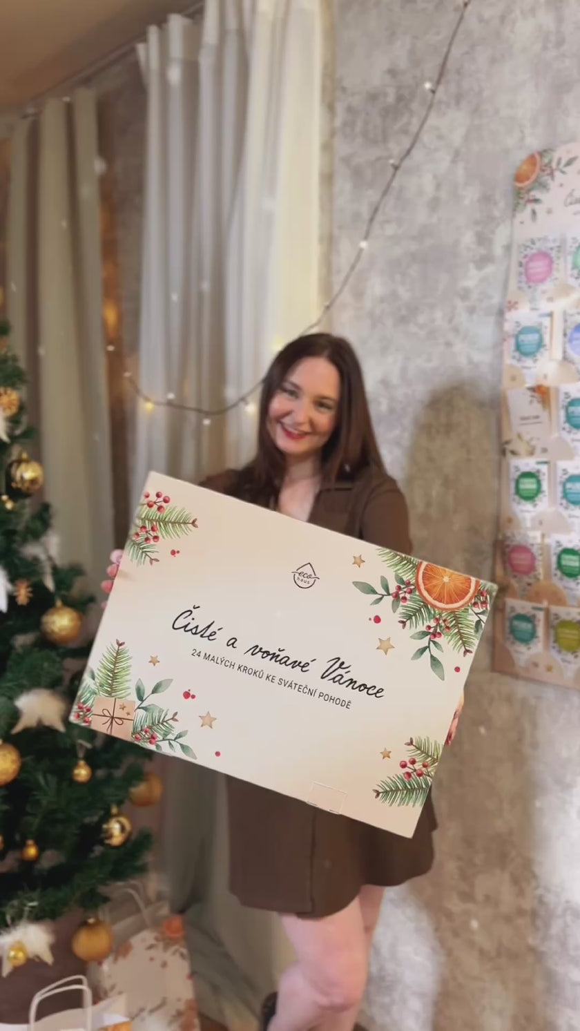 EcoHaus Adventní kalendář je jediný svého druhu v České republice. Praktický průvodce vánočním úklidem, který dává smysl a přináší klid. Každý den na tebe čeká drobný vzorek našeho produktu a QR kód s jednoduchým videonávodem. Krok za krokem tak bez stresu projdeš adventem a pomalu, s lehkostí, provoníš a pročistíš celý domov.