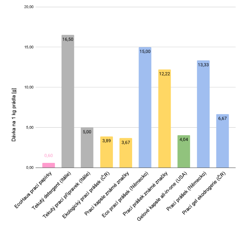EcoHaus papírky se dle všech dostupných srovnání řadí mezi nejúspornější produkty v kategorii pracích prostředků.
