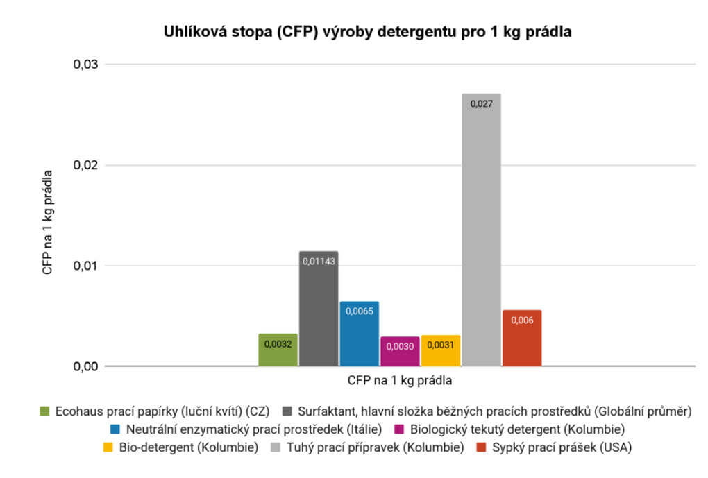 Data u detergentů nejsou veřejně publikovaná. Porovnáváme pouze s vědeckými studiemi, které splňují metodiku LCA.